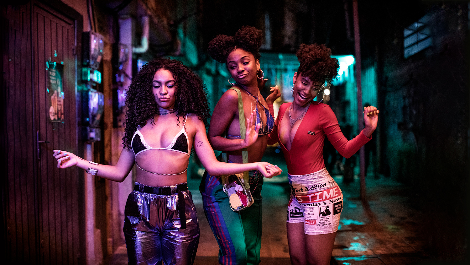 A escolha da favela como o cenário da comédia pode ser vista como uma mudança de curso na representação das periferias. Isso porque, até então, o local era limitado a narrativas de conflitos, drama e ações policiais. O elenco, majoritariamente negro, mostra que o tom das produções muda quando finalmente assumem o controle do que querem contar. “Estamos passando por um movimento muito forte não só de representatividade, mas de ocupar espaços diversos. O cinema é um mercado de difícil acesso e, por muito tempo, as pessoas da área olhavam para os nossos corpos de maneira objetificada”, declara Jonathan. “Vale Night é único na maneira de levar luz à problemática de maneira honesta e positiva. Ter um herói preto que vive uma comédia romântica é essencial para estampar nas telas que a gente se ama, produz cultura, gosta de moda…”